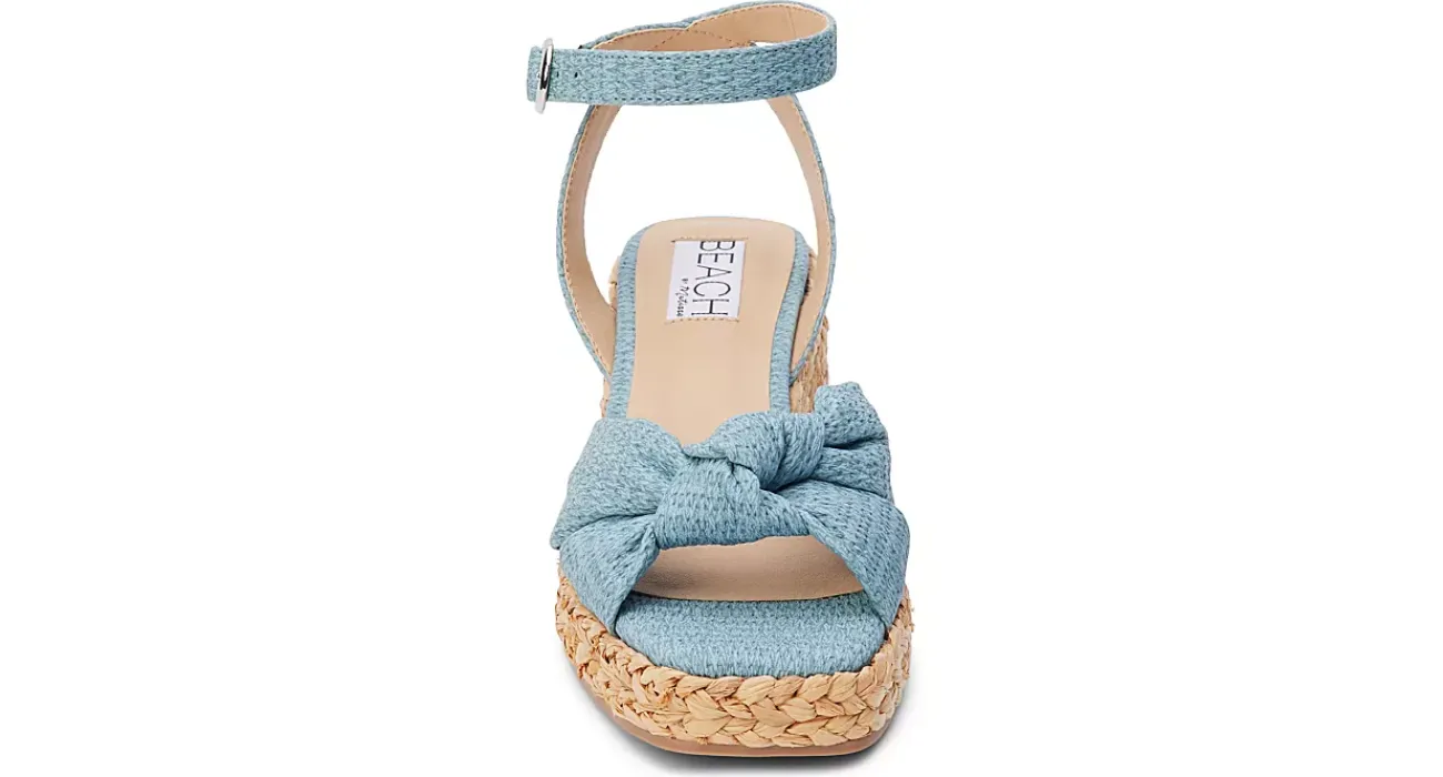 Head for party central in the Ibiza women’s sandal from Beach by Matisse. Featuring a knotted upper with crisscrossed straps for extra style, this buckled ankle shoe also has a woven heel and trim. The insole cushions your foot while the wedge heel adds lift.