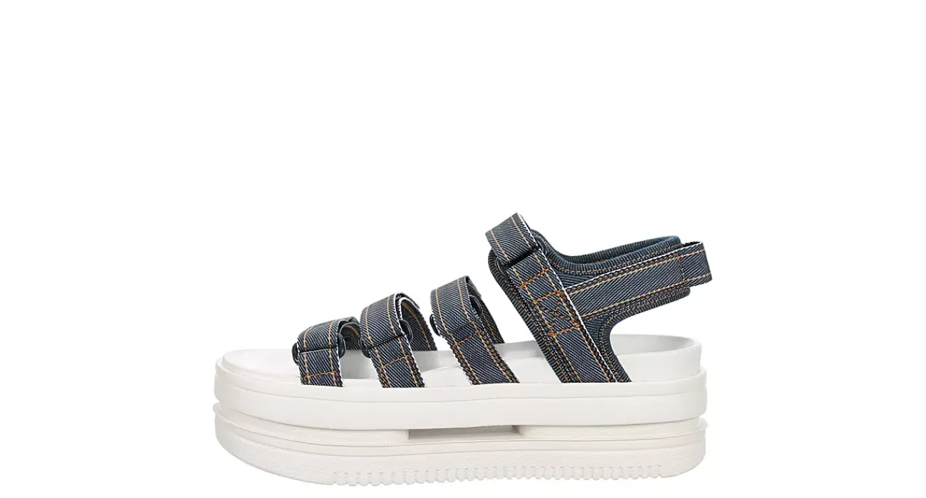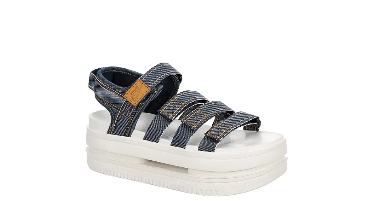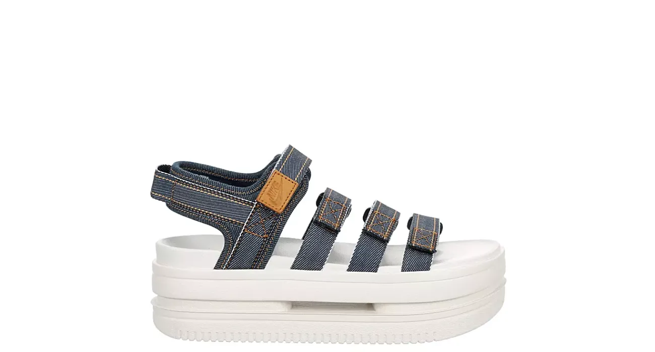 Get lifted in the bold Icon Classic SE women’s platform sandal from Nike. Featuring a strappy denim upper with Air Force 1 outsole for heritage style, this multiple hook & loop closure sandal is different in a fresh, cool way. The footbed cushions every step while that platform midsole adds the height you love.