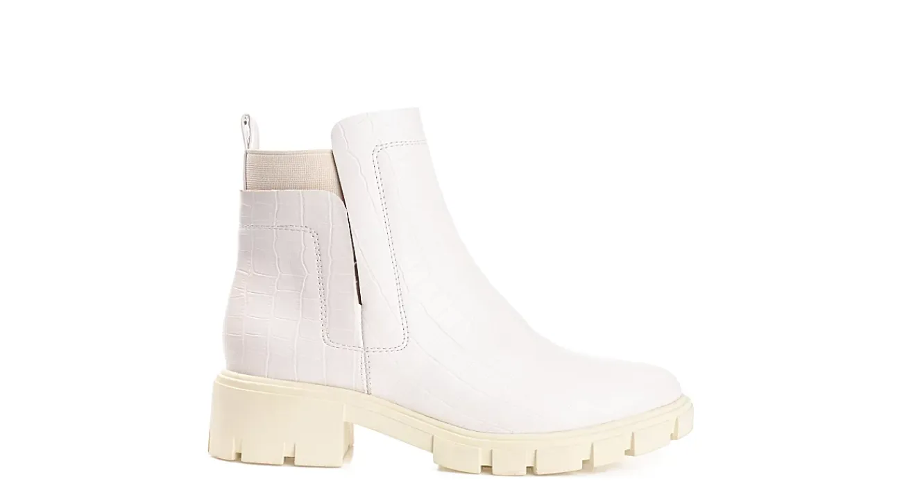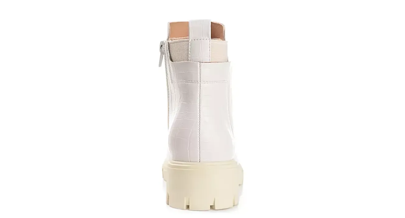Have fun in the Journee Collection Jeeva boot. With a croc print faux leather upper featuring a rear pull tab for easy entry, this inside zip boot offers a comfortable fit with stretch goring. The Tru Comfort Foam™ footbed cushions your steps while the low heel adds treaded lift.
