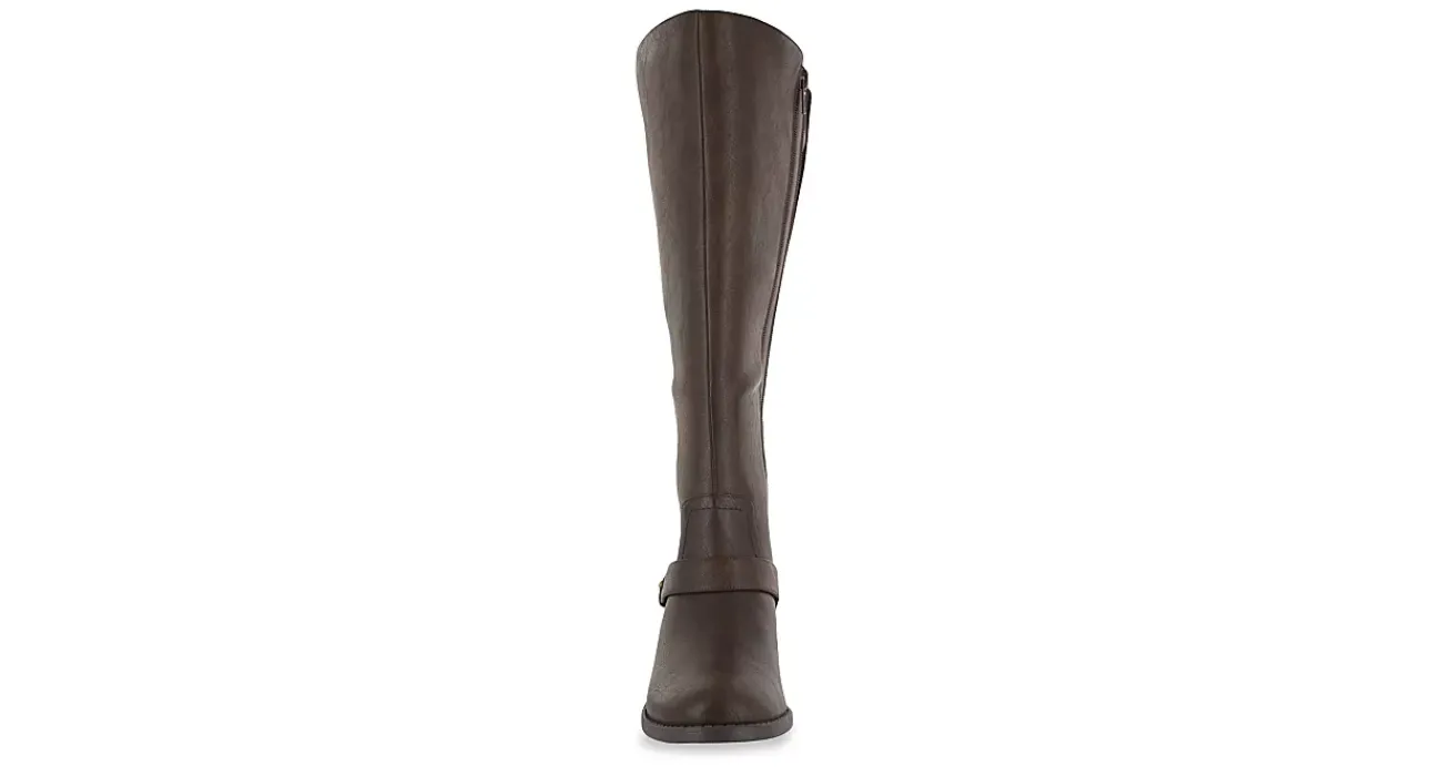 Ride (or step) in style with this Easy Street Jewel Wide Calf tall boot. With a faux leather upper featuring a refined style that is easy to pair with any outfit, this inside zip boot also makes room to adjust calf size with a zippered gusset panel. A nice blend of modern and Western, the stitching details accent the overlay strap that pulls the look together.