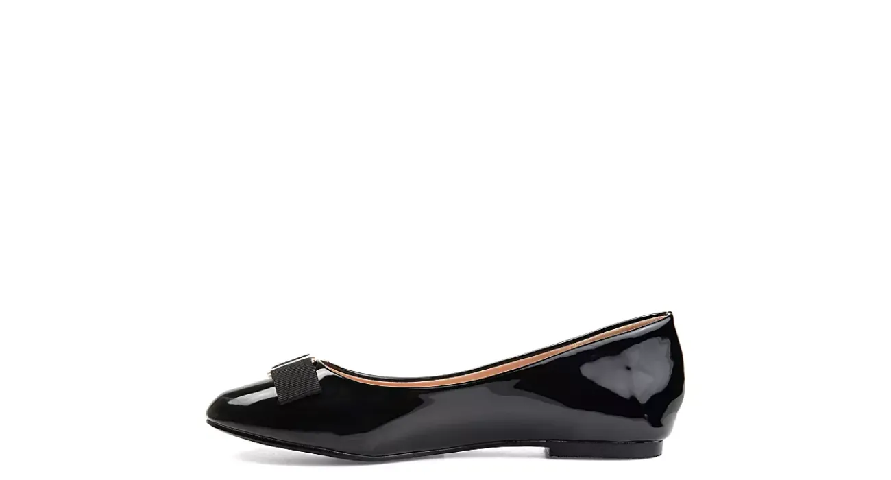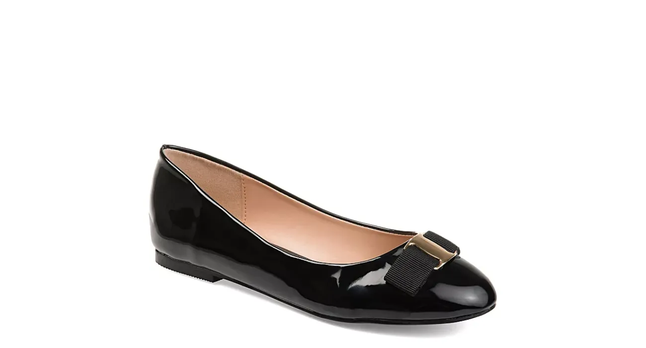 Instant day to night looks in the Kim flat from the Journee Collection. These versatile flats feature a grosgrain bow accent across the front and shiny faux patent leather upper for added style points. Slip them on with anything in your closet.