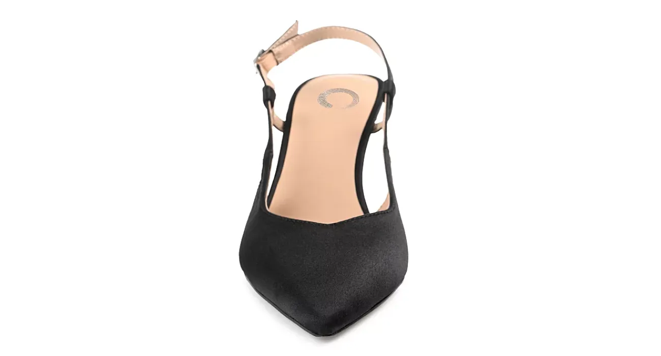 Step into style with the Knightly women’s pump from Journee Collection. With a chic satin fabric upper featuring a dainty slingback strap that adjusts for a perfect fit, this head-turning design, with its sleek pointed toe, is a stunning accessory at cocktail hour. A padded footbed cushions your feet, while the high stiletto heel creates a flattering lift.