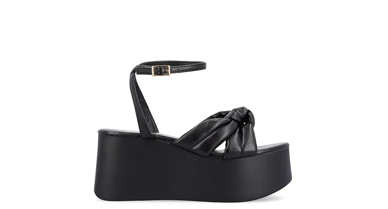 Have fun in the sun wearing the Lailee women’s platform sandal from Journee Collection. With a faux leather upper featuring a knotted strap design and a chic ankle strap that adjusts for a perfect fit, this sandal looks great with flowing dresses or skirts, shorts, and cropped jeans. A Tru Comfort Foam™ footbed cushions your feet while the elevated platform provides ample lift.