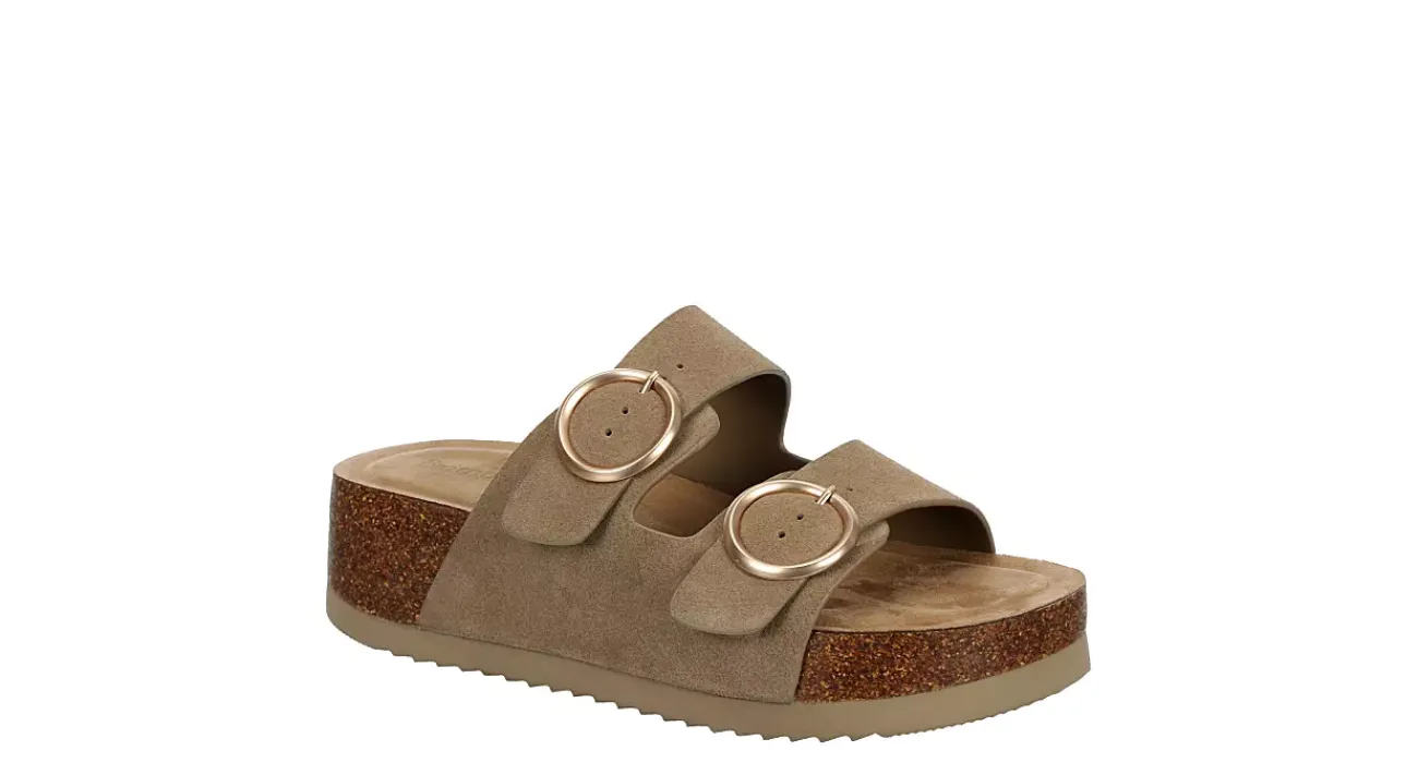 Lift your style in the Layla women’s sandal from Bjorndal. With a faux suede upper featuring a dual buckle strap for a custom fit, this slip-on sandal pairs well with jeans or a casual dress. The cushioned footbed & 2″ platform midsole cradle your foot, while the durable outsole provides excellent traction wherever you go.