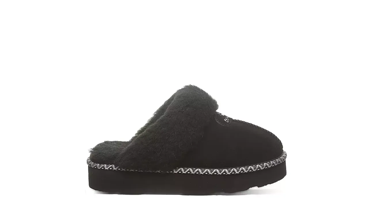 Look down in style with the Bearpaw Loki Lo Deco platform slipper. With a suede upper and colorful trim design, these slippers also feature a sheepskin lining and 2″ EVA flatform midsole. Chill in some comfy sweats or head out for a quick store run.