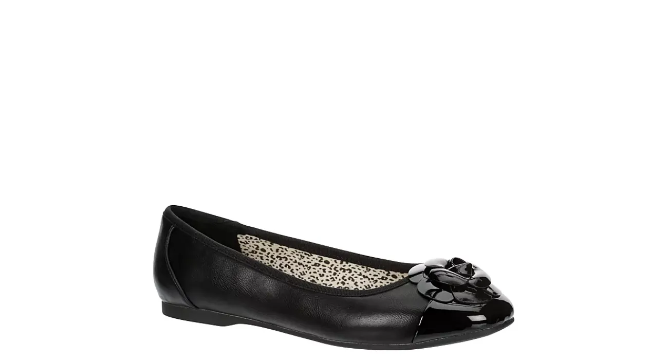 Everyday style brightens your day in the Lorelei women’s flat from Lauren Blakwell. With a faux leather upper featuring a patent leather cap toe and a flower accent, this stylish slip-on is perfect for the office or daily errands around town. The insole cushions your foot, while the durable outsole provides some texture for grip.
