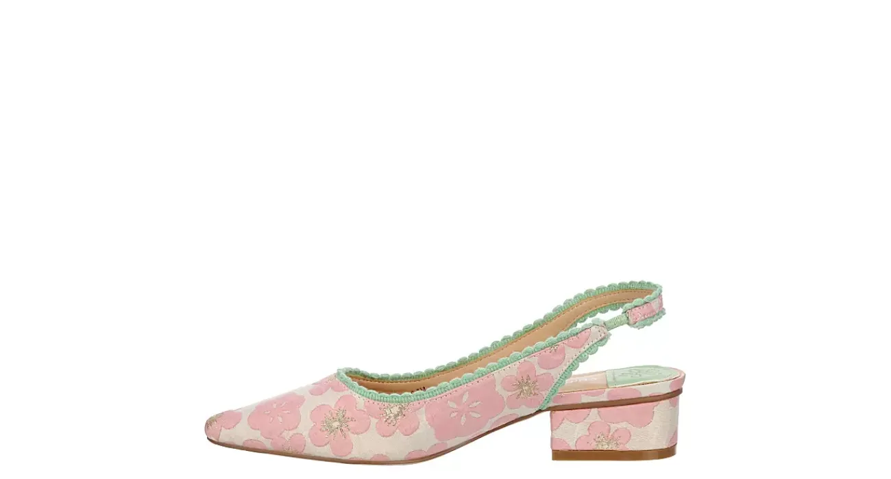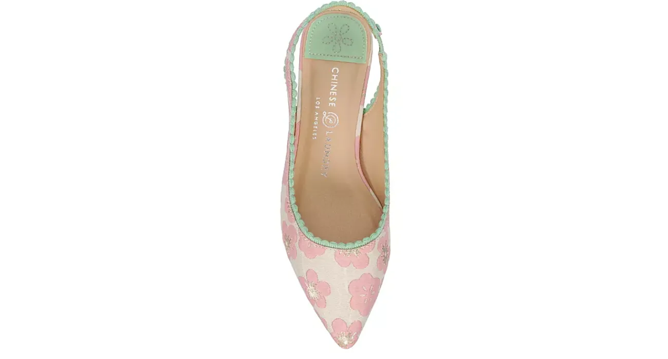 Your style gets a dose of sophisticated whimsy in the Mango women’s pump from Chinese Laundry. Featuring a printed fabric & synthetic upper with a sleek pointed toe, this elastic slingback shoe’s scalloped trim shows its exuberance and charm. The insole soothes your foot, while the low heel adds stability.