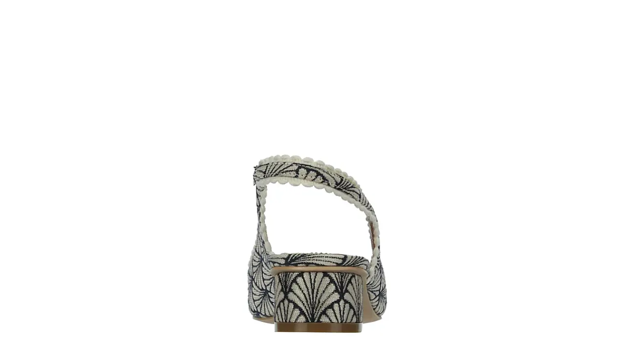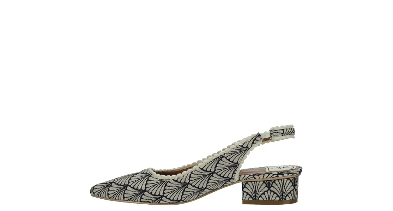Your style gets a dose of sophisticated whimsy in the Mango women’s pump from Chinese Laundry. Featuring a printed fabric & synthetic upper with a sleek pointed toe, this elastic slingback shoe’s scalloped trim shows its exuberance and charm. The insole soothes your foot, while the low heel adds stability.