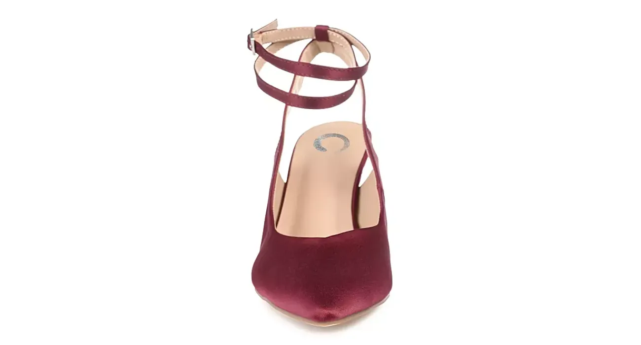 Effortlessly elegant, the Marcella women’s pump from Journee Collection will be an absolute head-turner. With a smooth satin fabric upper featuring a chic wrap-around ankle strap for feminine flair, this gorgeous pump, with a flattering pointed toe and 3″ stiletto heel, is designed for a formal event, pairing perfectly with a beautiful dress or skirt. A padded footbed cushions your feet, while the synthetic outsole provides excellent grip and stability.