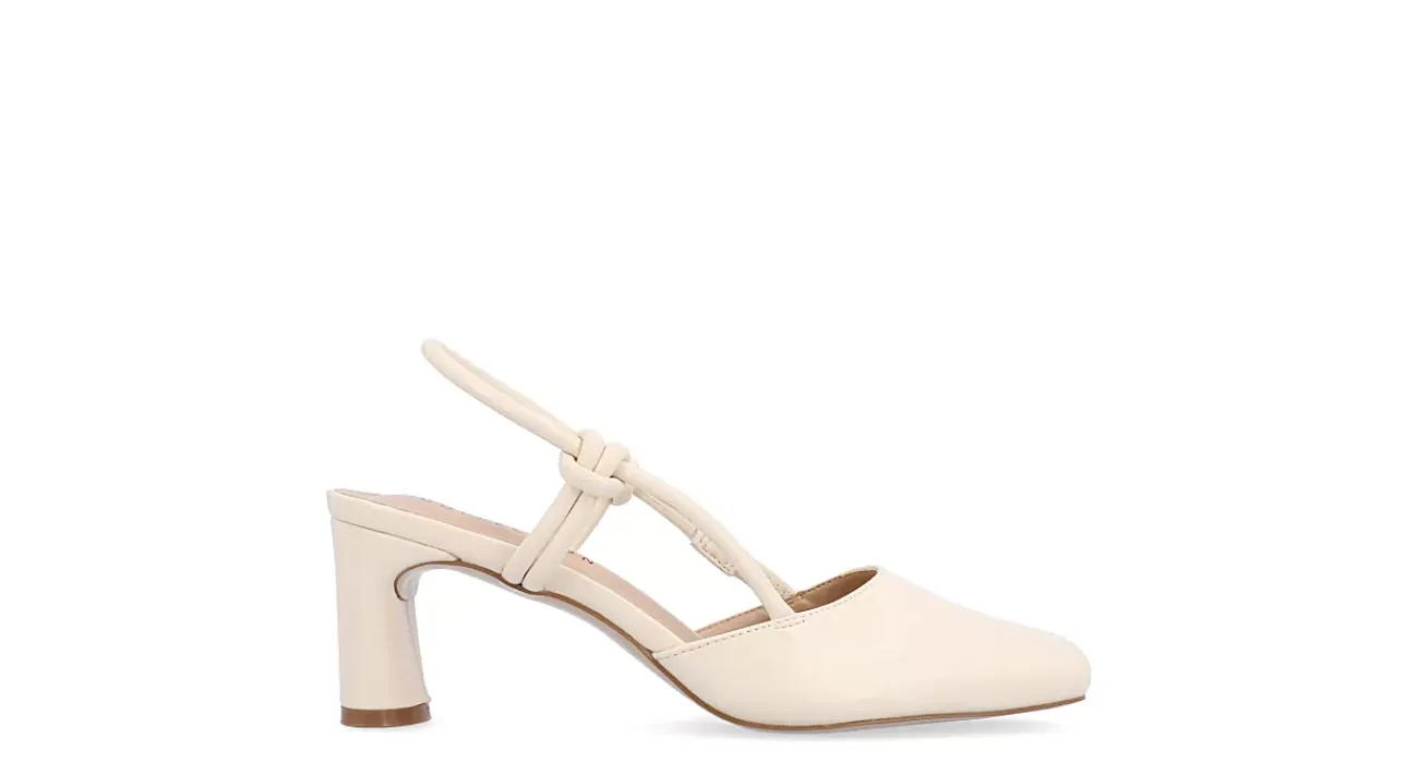 Make no mistake, the Margeene women’s pump from Journee Collection is a closet must-have. With a faux leather upper featuring a knotted slingback strap design and flattering square toe, this pump will attract all the attention. The padded footbed enhances comfort, while the 2½” block heel offers just enough lift.