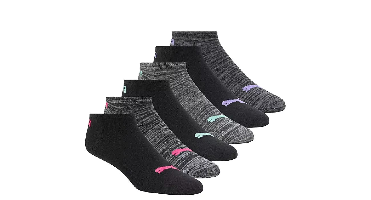 Keep things low-profile and easy in the PUMA No Show socks 6 Pack. With arch support for stability, these cotton blend socks feature the PUMA cat & word logos as well as Cool Cell technology to maintain your cool. The non-slip heel keeps them up while the cushioned sole makes walking comfy.