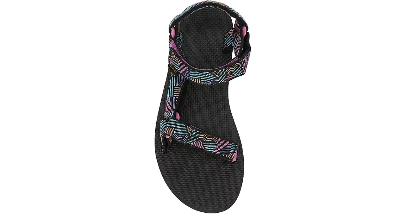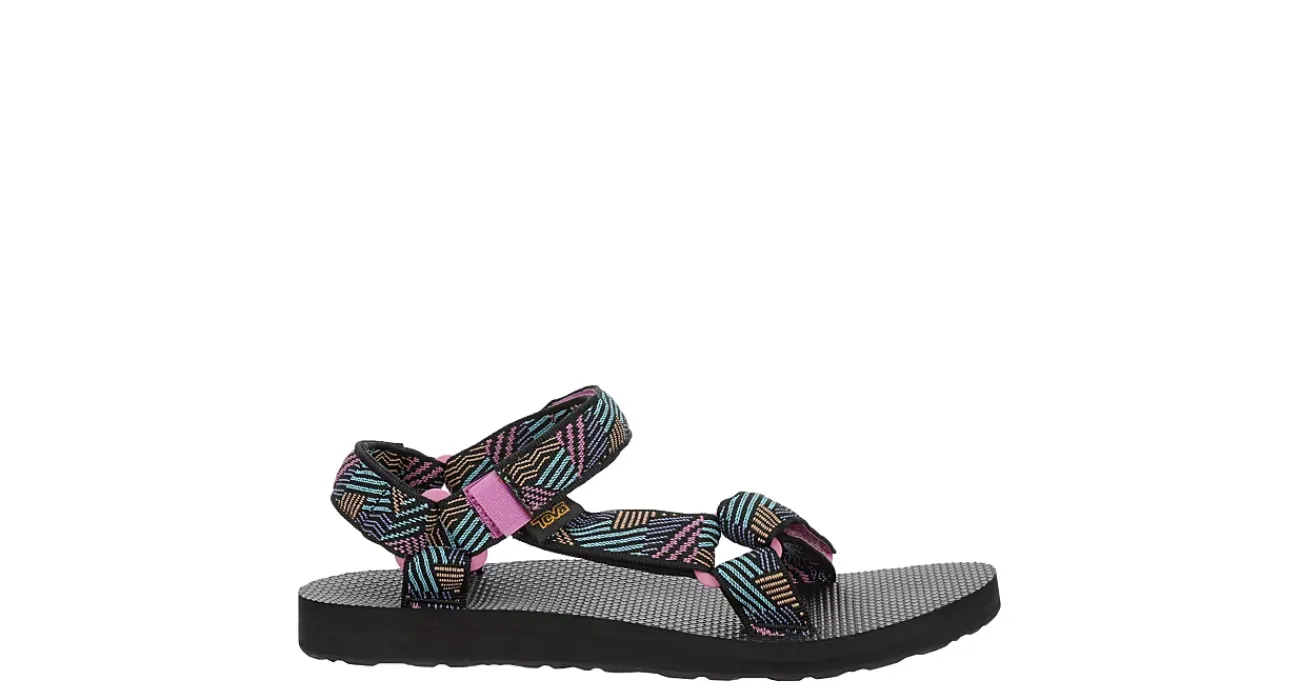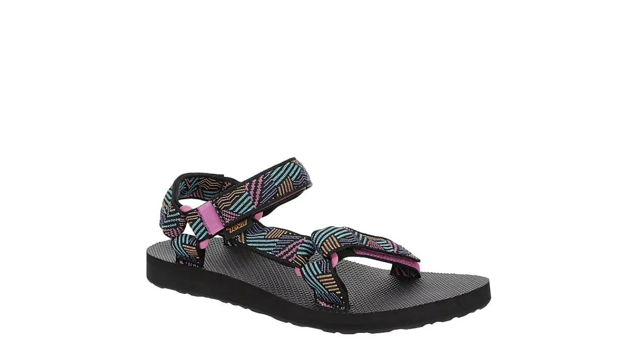 Beat the heat with the women’s Teva Original Universal sandal. The water friendly fabric straps will keep your foot firmly in place thanks to hook and loops straps found at the ankle and toe. A cushioned footbed will also keep you comfortable while you’re on the beach or enjoying the weekend at brunch.