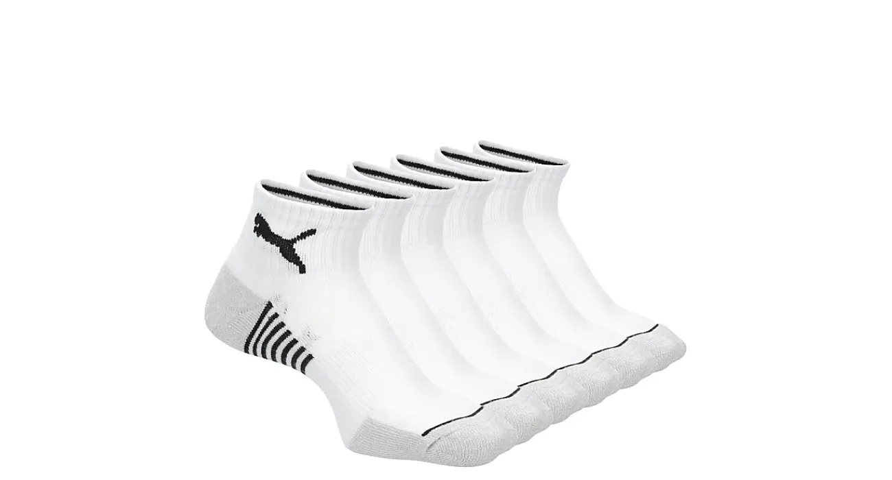 Enjoy the soft feel of the Quarter Crew socks 6 pack from PUMA. Made from a soft construction featuring a ribbed cuff for a secure fit, these socks are perfect for the gym or relaxing on the couch. Arch support cushions your feet, while the smooth toe seam prevents irritation.
