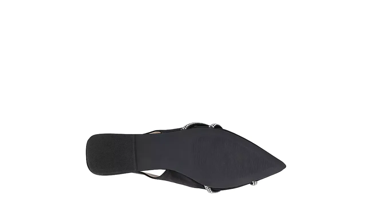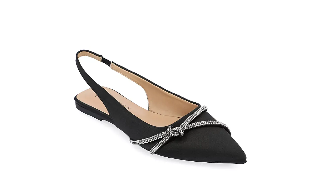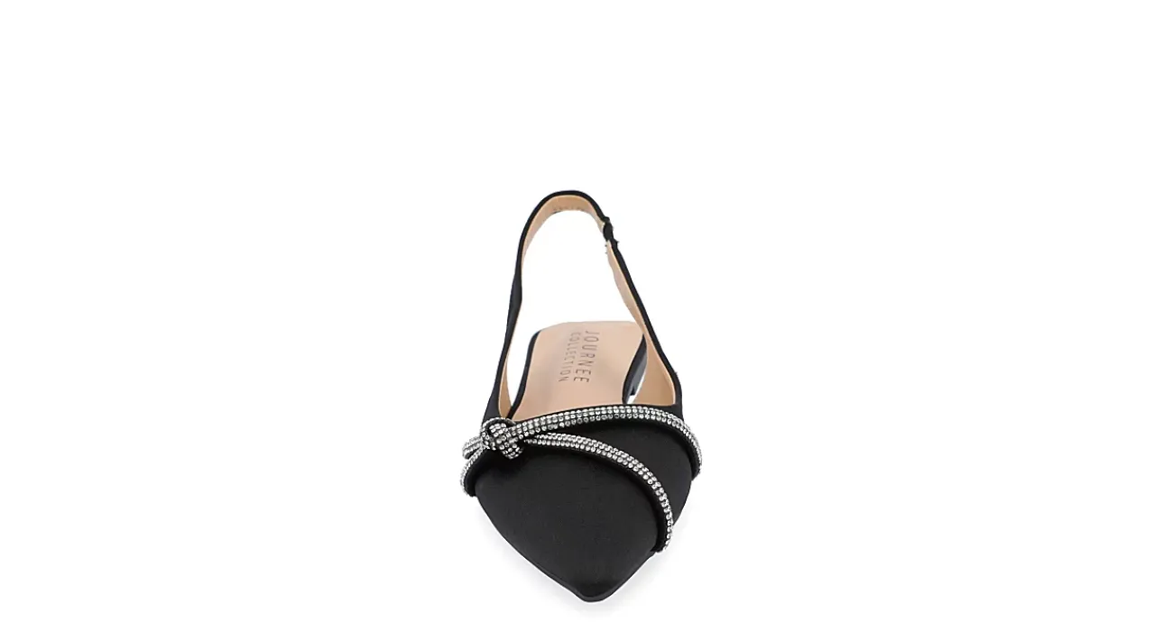 Pull off a fabulous look in the Rebbel women’s flat from Journee Collection. With a satin upper featuring a sparkly rhinestone accent strap, this slingback flat, with its chic pointy toe, effortlessly goes from day to night. A padded footbed provides plenty of comfort and support for all-day wear.