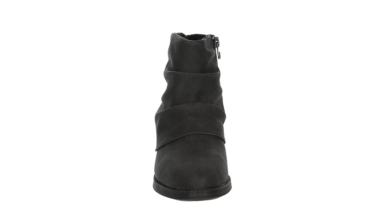 Your favorite always grab shoe: the Riley boot from Blowfish Malibu. Featuring a faux leather upper with a cross between slouchy and foldover vibe, this easy zip bootie has relaxed down to a tee. The footbed soothes, while the stacked heel adds just enough lift.
