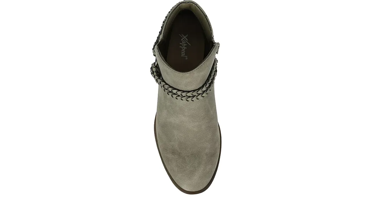 Biker style runs wild in the Xappeal Sandie boot. Featuring a faux leather upper with an elastic insert for a secure fit, these easy zip ankle boots look great with jeans or a long skirt. The braided straps with O-ring hardware adds edge, while the block heel adds just enough lift.