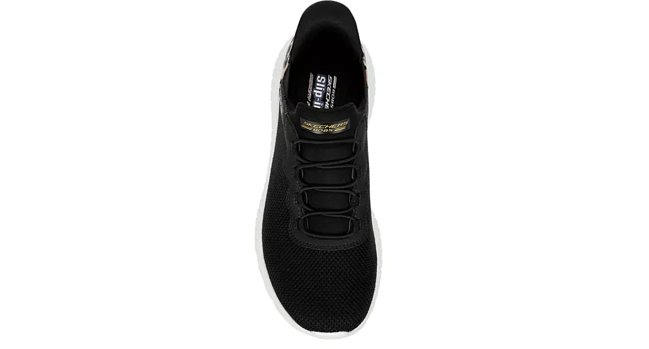 Get comfort with every step in the Skechers Slip-ins: BOBS Sport Squad Chaos sneaker. With an engineered knit upper featuring the Exclusive Heel Pillow™, this sneaker has fun leopard print at the heel. The Skechers Memory Foam™ insole and shock-absorbing midsole offer supportive cushioning, while the outsole provides flexible traction.