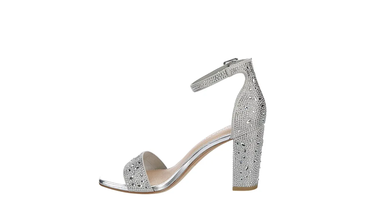 Dress up your look in the classically stylish Stella women’s sandal from Michael by Michael Shannon. With a glittery satin & rhinestone upper featuring a square toe for an elegant finish, this ankle buckle strap sandal looks great with jeans, dresses or skirts for maximum versatility. The lightly padded footbed soothes your foot while the 3 1/4″ half block heel stabilizes your walk for confident strides.
