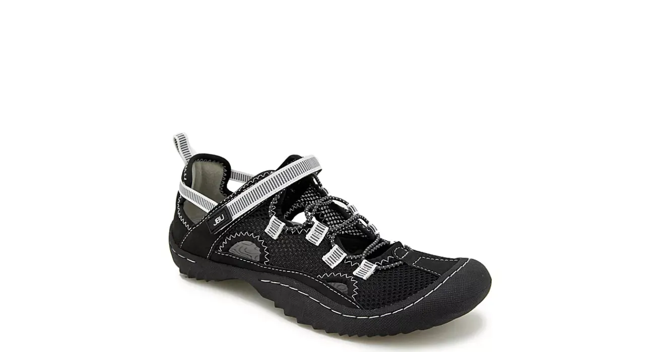 Forge ahead, in airier fashion, with the JBU Tahoe MJ women’s water shoe. With a water-ready mesh & microfiber upper featuring bungee cord lacing & an instep strap for a secure fit, this slip-on shoe also has cutouts to support breathability. The contoured EVA insole cushions every step while the non-slip outsole offers durable, multi-surface traction.