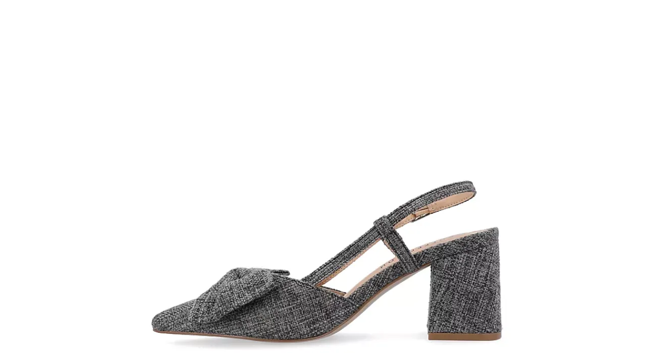 Garner attention everywhere in the Tailynn women’s pump from Journee Collection. With a luxe canvas upper featuring a charming bow detail and a classy pointy toe, this pump has a slingback strap that adjusts for a perfect fit. The padded footbed cushions your feet, while the block heel offers a stable lift.