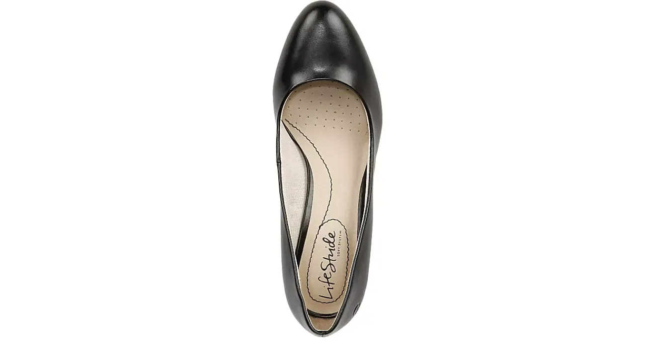 Essential addition to your everyday style – the Taylor women’s pump from LifeStride. With a faux leather upper featuring an almond toe, this slip-on heel is a timeless classic. The Soft System® comfort package cushions with all-day support that works nicely with the cupped heel.