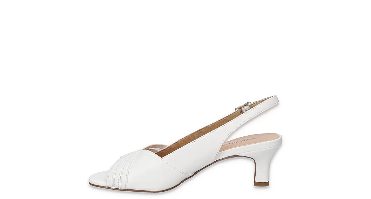 Be ready for the good in the Teton women’s pump from Easy Street. With a flattering overlay pattern, this slingback pump is perfect for summers in the office. The footbed soothes, while the low heel adds stable lift.