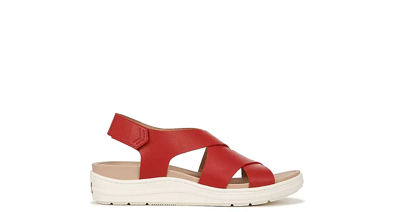 Long walks up the shore go great with the Dr. Scholl’s Time Off Sea women’s sandal. Featuring a faux leather upper with thick crisscross straps for extra style, this sporty slingback also has a traction wedge heel and platform. The Insole Technology cushions every step while supporting your arch as well.