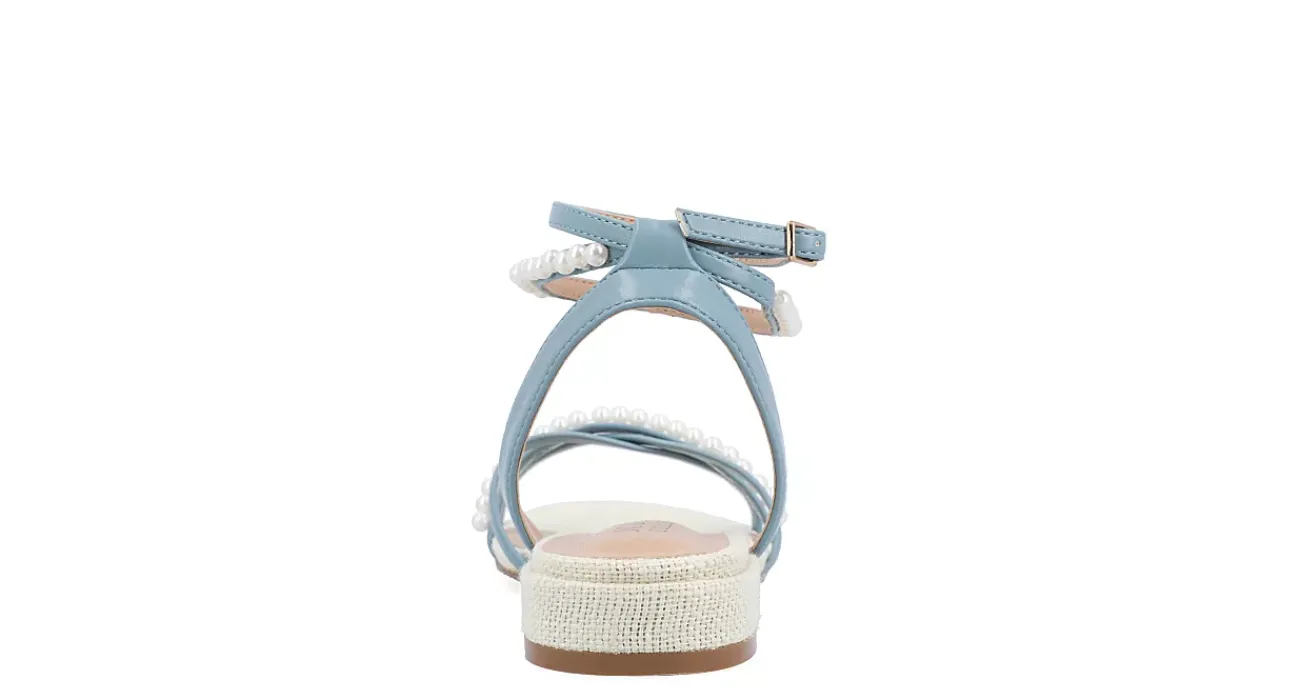Go all out for date night with the Tulsi women’s flat sandal from Journee Collection. With a luxe vegan leather upper featuring pearl embellishments for a classy touch and an adjustable ankle strap for a perfect fit, this chic sandal pairs with everything from jeans to dresses or skirts. The padded footbed cushions your feet, while the low block heel offers a subtle lift.