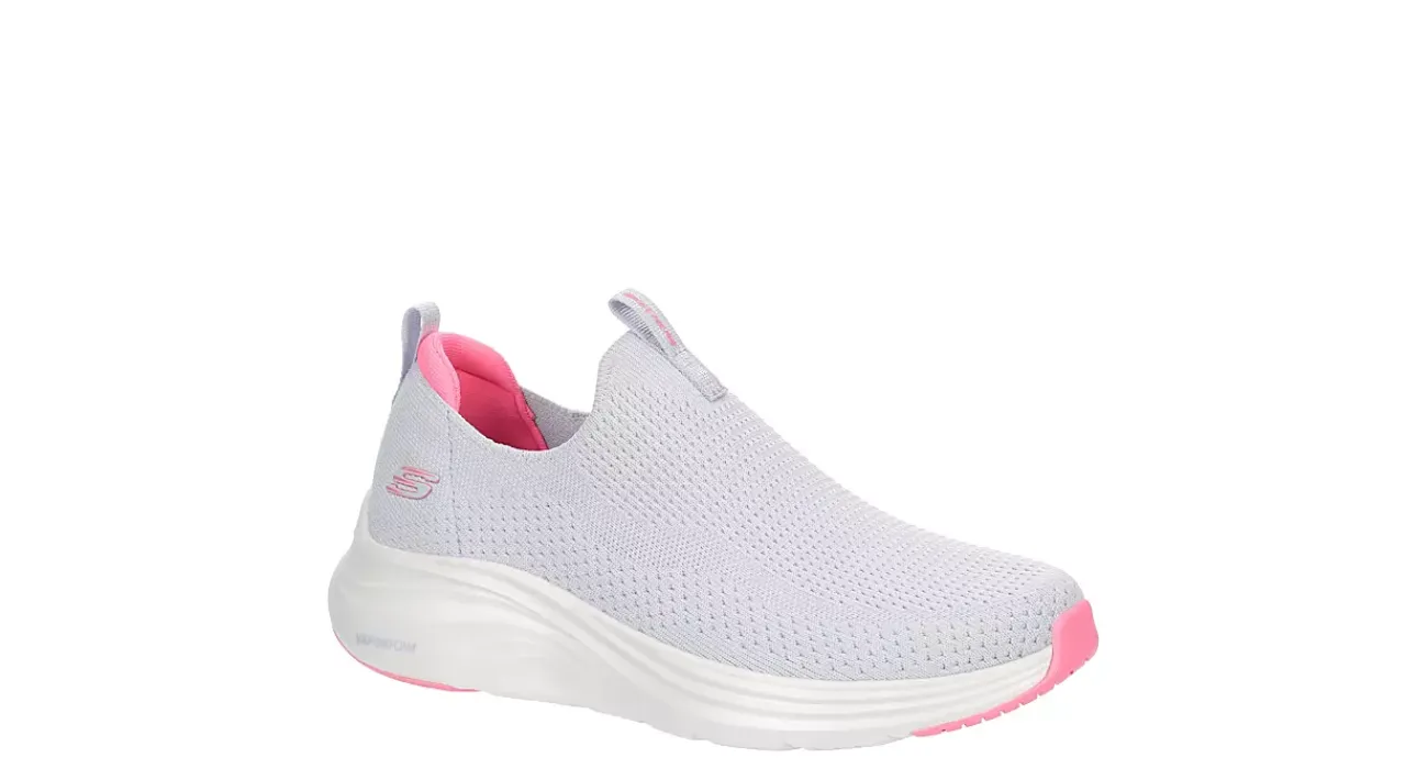 Keep your stride sleek in the Vapor Foam – Covert women’s running shoe from Skechers. Featuring a Stretch Fit® engineered mesh upper, this slip-on sneaker is machine washable for easy maintenance. The Skechers Air-Cooled Memory Foam® insole & ultra lightweight Vapor Foam™ midsole cushion every step while the outsole offers flexible traction.