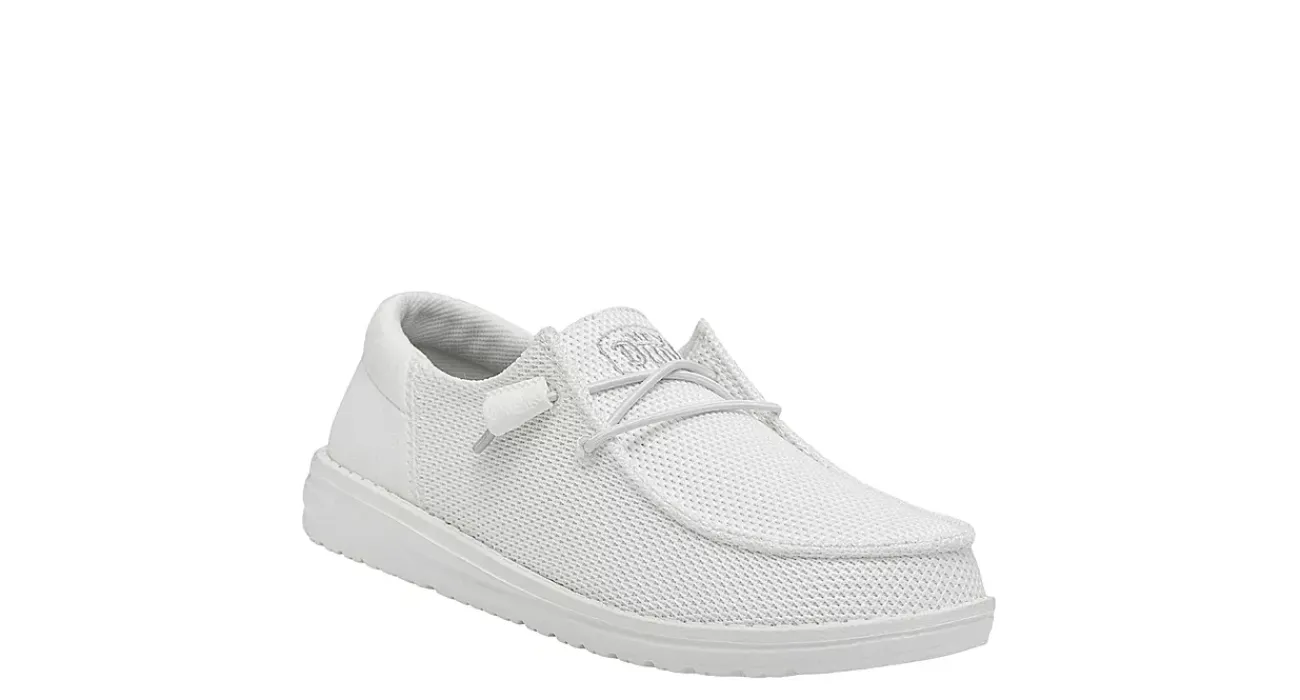 Relax into your passion with the HEYDUDE Wendy Funk Mono women’s slip-on sneaker. With a chambray-blend upper featuring a padded collar for extra support, Flex & Fold technology, and contrasting heel detail, this sneaker is machine washable for easy maintenance. The removable Memory Foam insole and leather lining offer ergonomic comfort and cushioning, while the ultralight outsole sets you free to explore unfettered.