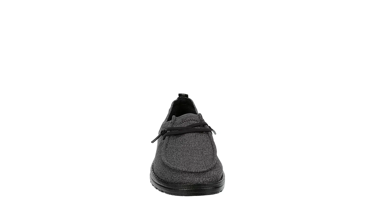 Don’t mock the comfort in the HEYDUDE Wendy Halo women’s slip-on sneaker. With a breathable textile upper featuring Flex & Fold Technology, this sneaker has a soft moc toe and rear pull tab for easy entry. The Memory Foam insole and leather lining offer ergonomic support and cushioning while the ultralight, sculpted outsole sets you free to explore unfettered.