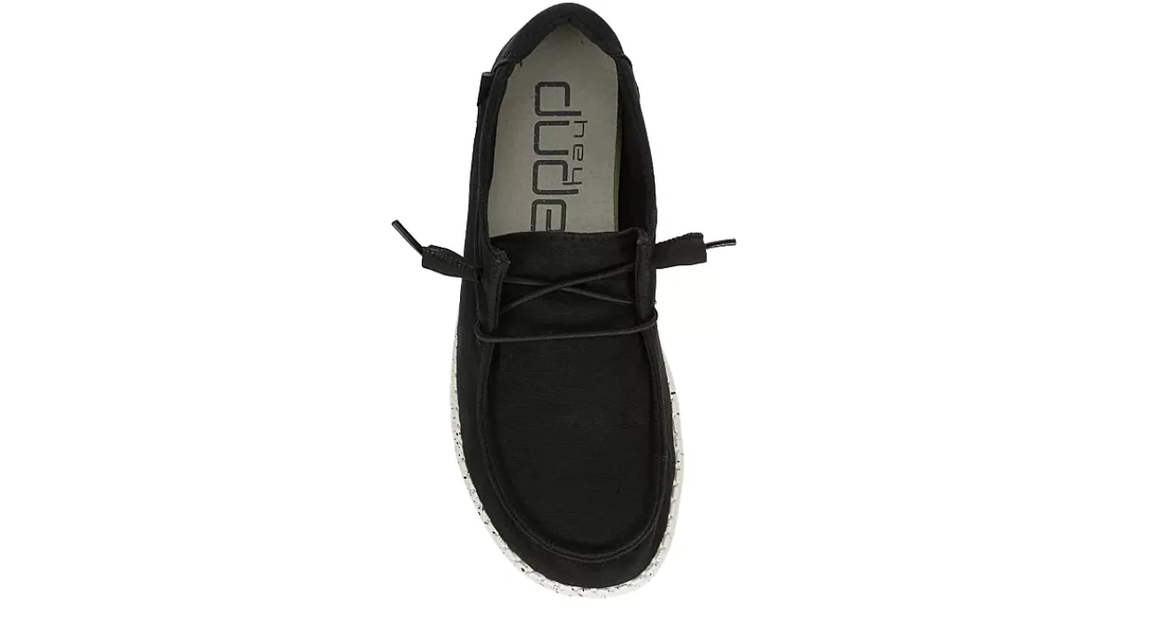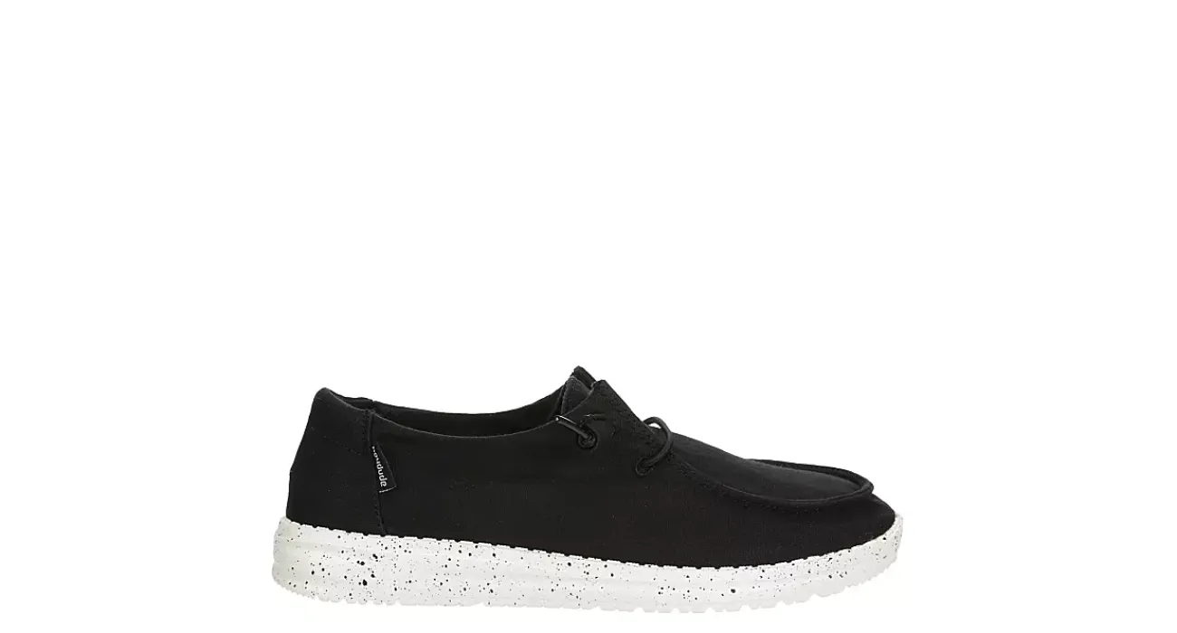 Relax into your passion with the HEYDUDE Wendy women’s slip-on sneaker. With a canvas upper featuring a wide fit and elastic laces for a secure fit, this sneaker is machine washable for easy maintenance. The removable Memory Foam insole and leather lining offer ergonomic support and cushioning while the ultralight outsole sets you free to explore unfettered.