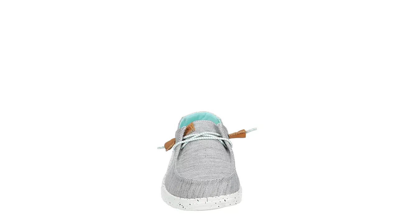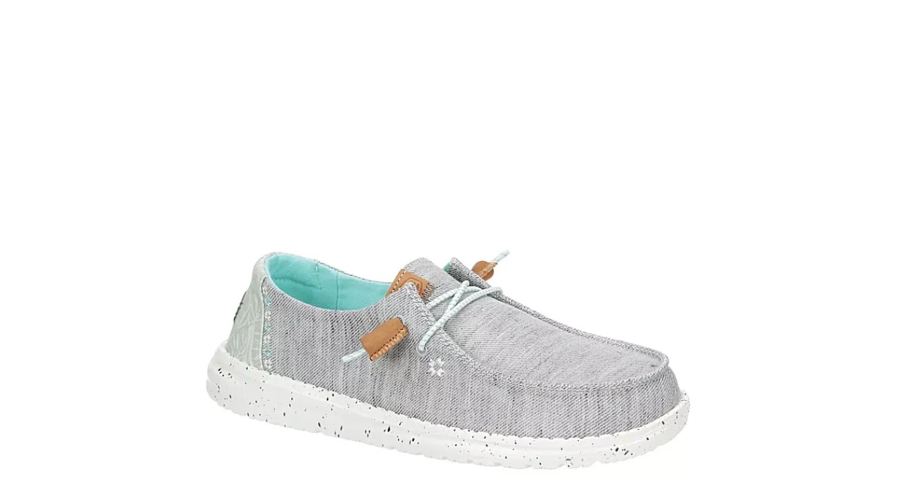 Relax into your passion with the HEYDUDE Wendy Heathered Slub Tropical women’s slip-on sneaker. With a heathered canvas upper featuring a contrasting heel detail, this sneaker also has elastic laces for a secure fit. The removablefoam insole and leather-lining comforts your foot, while the ultralight outsole sets you free to explore unfettered.