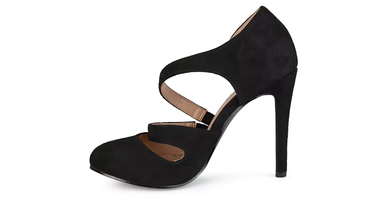 Step into style with the chic Zeera women’s pump from Journee Collection. A faux suede upper featuring two asymmetrical crossover straps and a skinny 4¼” stiletto heel creates a flattering look for any dressy occasion. The padded footbed soothes and supports your feet, so you can enjoy hours of comfortable wear in these stunning pumps.