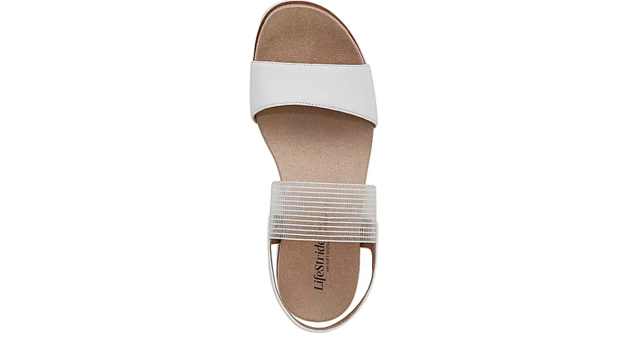 Take your style to the next level in the Zing sandal from LifeStride. With a faux leather upper featuring a translucent stretch gore strap, this slingback sandal provides all-day support with its Soft System® cushioned insole. The wedge heel gives a stable lift.